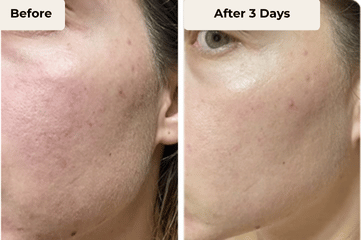 Apply pea sized shot all over face. Gently pat (don't rub) into face, avoiding the eye area. You may feel a gentle tingling sensation, this is normal and means the micro-spicules are working.